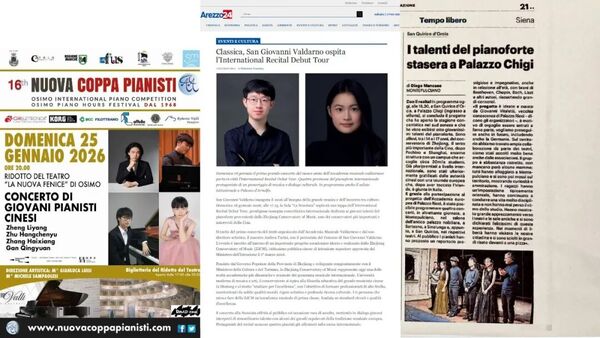 During the performance at San Giovanni Valdarno, the team received a warm welcome from the local mayor, Valentina Vadi, and officials from the cultural department. Both sides engaged in a brief and friendly exchange on cultural and artistic exchanges between China and foreign countries. The mayor highly recognized the performance level of the students from Zhejiang Conservatory of Music and expressed strong anticipation for future cultural exchanges between the two places. Major Italian media outlets such as La Nazione and Corriere di Siena also focused on reporting, providing detailed introductions to the students' performances and the reactions at the venue, further enhancing the influence of this tour.